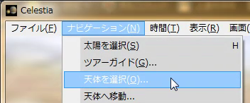 ナビーゲーションメニューから天体を選択