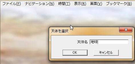 天体を選択の入力欄に「地球」と入力