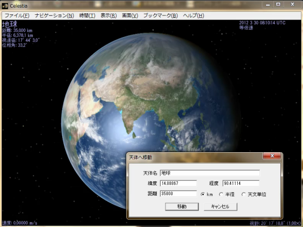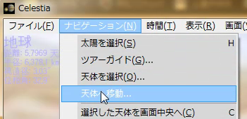 選択した天体へ移動(下図)と順にやってみました。