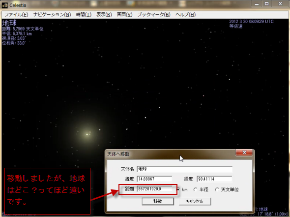地球に移動しましたが、距離が遠すぎてどこにあるのかわかりませんね。