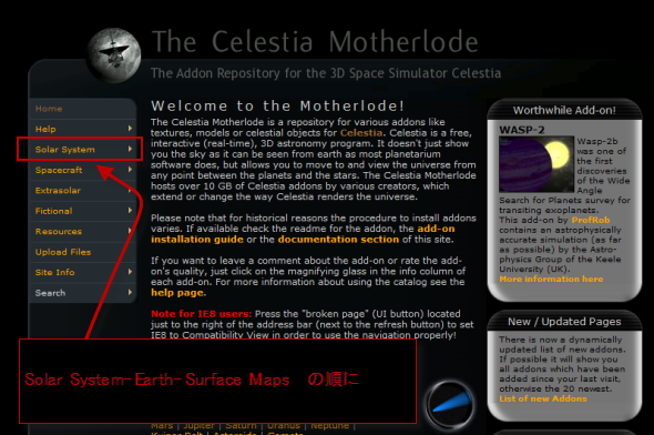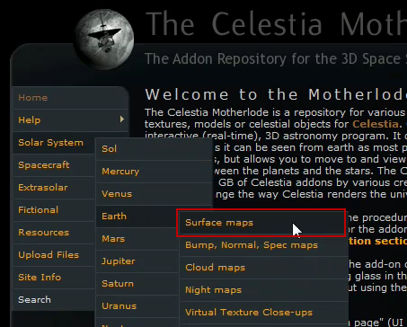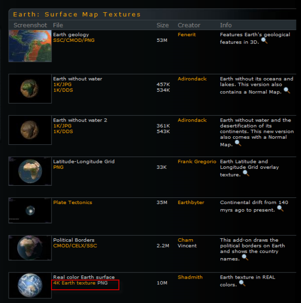 すると地球表面の地図テクスチャーのアドオンを選択できます。