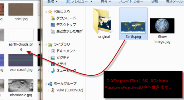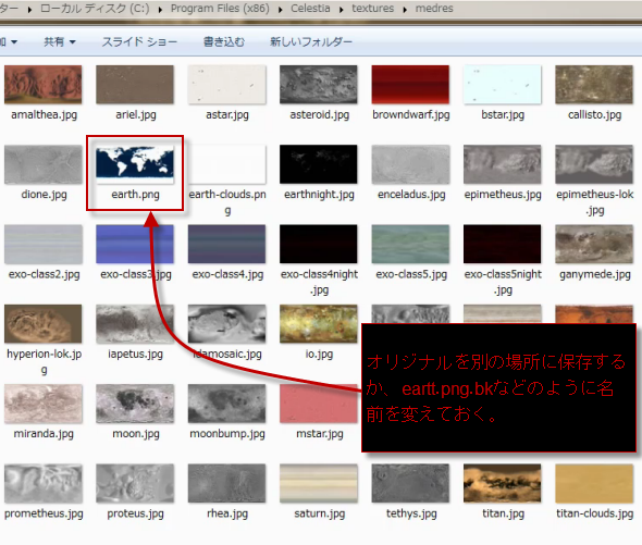 使うのは、Earth.pngです。これを予めインストールしてある元のファイル(同名)と置き換えます。