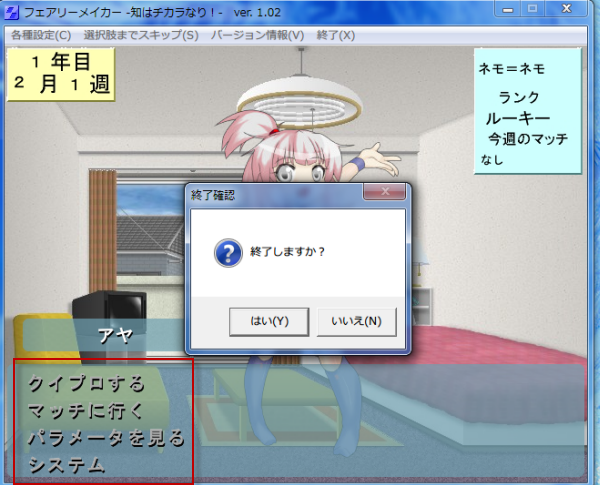 訓練が終わって、部屋にもどったら、次の行動を選択できます。