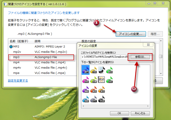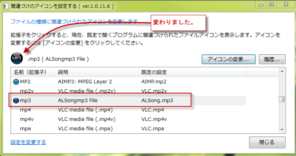 Windows Vista、7で利用しているアプリケーションソフトの拡張子ごとに設定されたファイルのアイコンを変更できるソフトです。