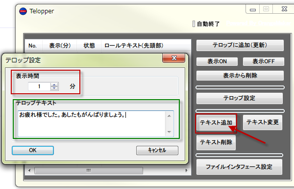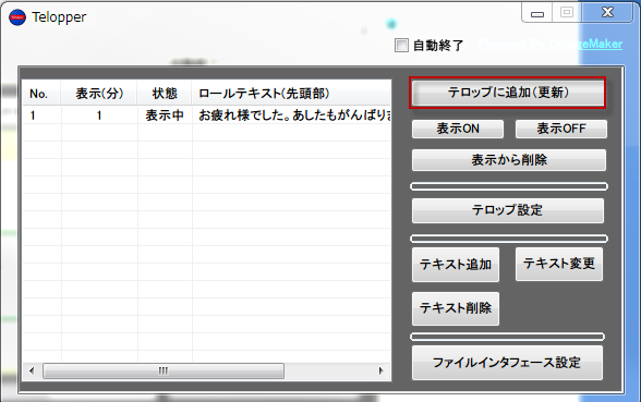 設定表示時間表示後テロップは停止します。