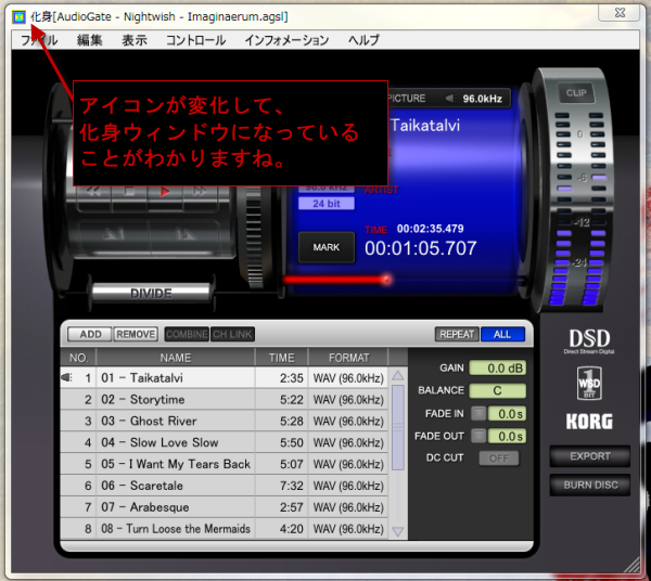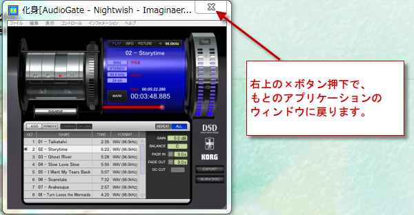 この窓の化身は、どんなに小さくてもいいから、ちょっと片隅に表示しておきたいアプリケーションのウィンドウを任意のサイズに変更してじゃまにならないように表示することができるソフトです。