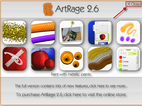 ソフトをすぐに使いたい時は、右上のCloseをクリックします。
