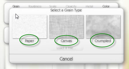 種類はPaper紙とCanvasカンバス、Crumpledしわしわ