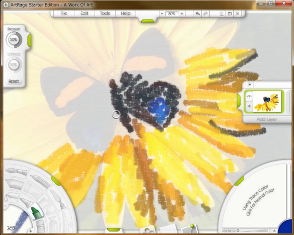 アートレイジ ArtRageスタートエディション とは、オイルブラシやパレットナイフや鉛筆、チョーク、マーカー、クレヨンなどの描画ツールを使ってお絵かきができるソフトです。