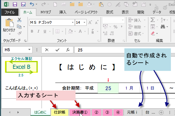 エクセル簿記(一般用)を使ってみる