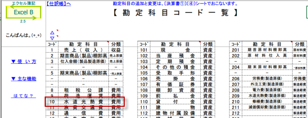勘定科目コード一覧が表示されます。