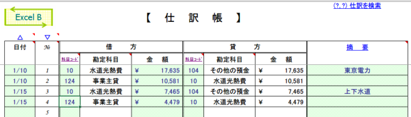 青色申告用には、有料ソフトも各種発売されていますが、エクセル簿記(一般用)はフリーでありながら、たいへん使いやすく、Excelを日常使っている方には非常に使いやすいのではないかと思います。