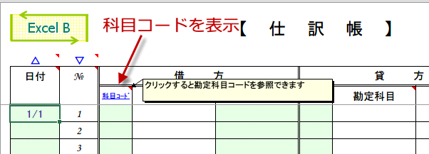 科目コードを入れると、勘定科目が表示されます。