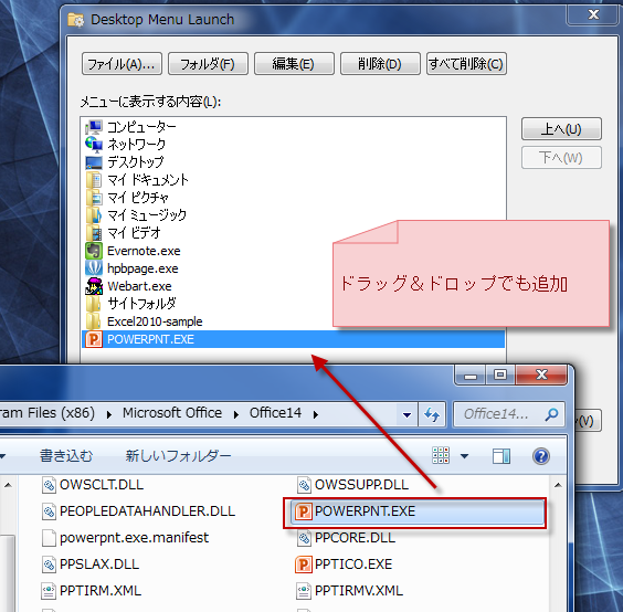 ファイルやフォルダは、ドラッグアンドドロップでも追加できます。