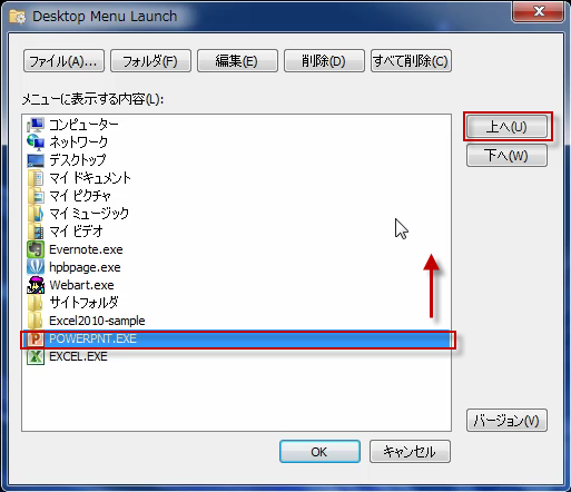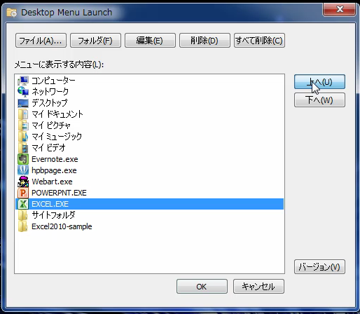 登録項目の順番を変えるには、順番を変更したい項目を選択して、
