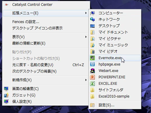 あらかじめ登録したアプリケーションやフォルダなどを、デスクトップ上の右クリックメニューから起動できるようになります。