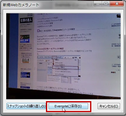 次に、「スナップショットの撮り直し」と、「Evernoteに保存」というボタンが現れる。