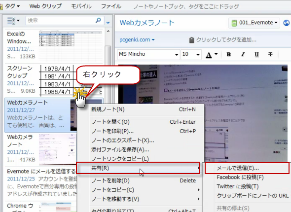 2.パソコンの画面を取り込んでノート