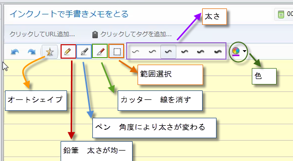 メモの上部にツールが用意されている。