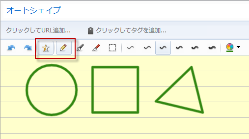 オートシェイプを選択した状態でフリーハンドで四角形や円などを描くと、自動的にきちんとした図形に修正してくれる。