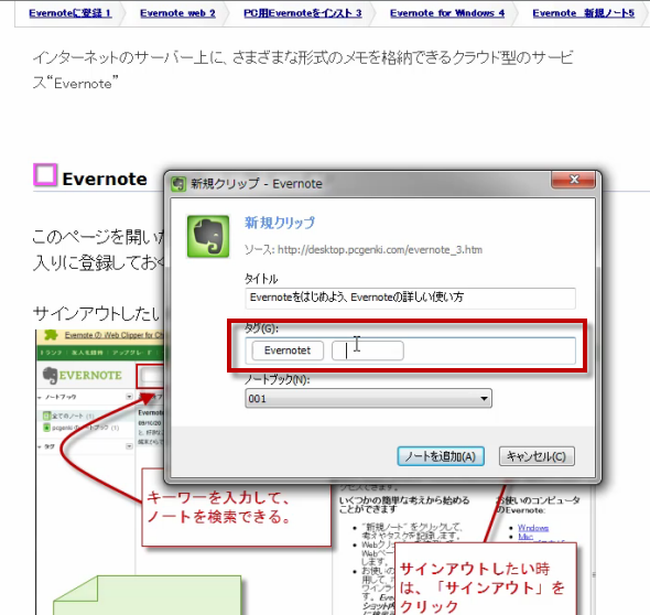 5.FirefoxやChromeでEvernote(エバーノート)にページを取り込むには