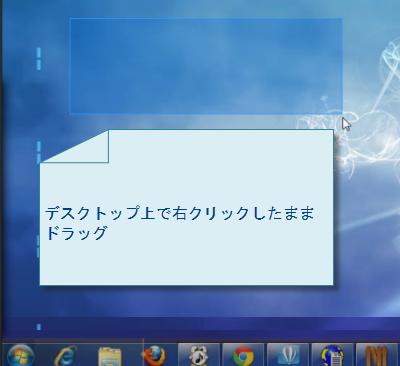 新しい追加「フェンス」を作成するには、デスクトップ上で右クリックしたままドラッグして枠を作ります。