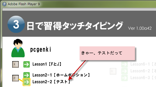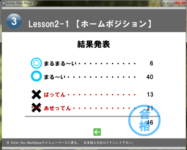 テストも早いだけではダメです。タイミングを合わせてリズミカルにタイプします。