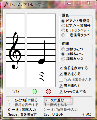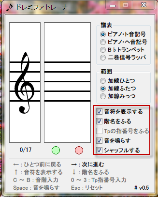 いたってシンプルな画面で使いやすく、音符をまったく読めない人でも、これで練習することで、ある程度読めるようになりますよ。