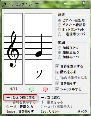 前の音譜に戻るには、←をクリックします。