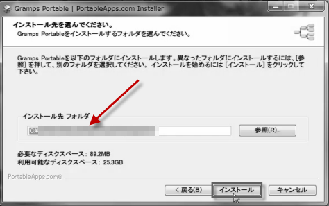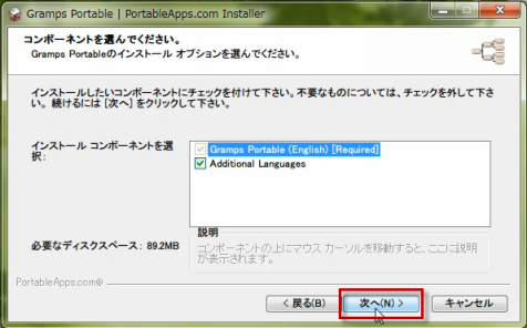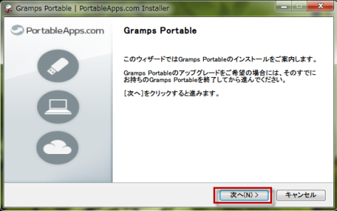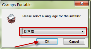 ダウンロードした「GrampsPortable_3.4.1.paf.exe」は、インストーラー付きの自動解凍書庫なので、クリックして実行して、インストーラーの指示に従う。。