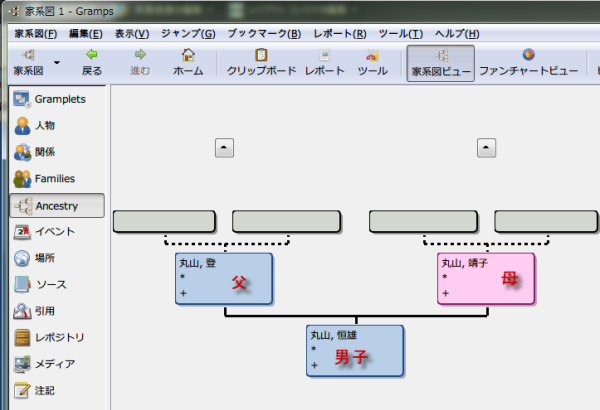 Gramps 家系図作成ソフト 手軽に家系図が作れる