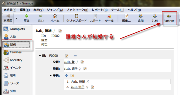 また、子孫方向に家系図を育てていきます。