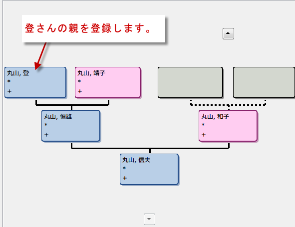 今度は、先祖方向に家系図を伸ばしてそだてていきます。