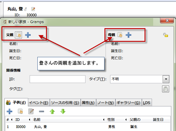 登さんの両親(先祖)を登録します。