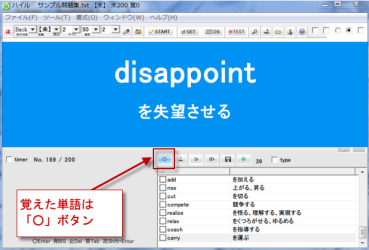 試用版は、サンプル問題集が、200単語だけですが、シェアウェアの登録をすると、「中学生(高校受験対応)」2,100語、「高校生(大学受験対応)」2,000語で、単語の暗記が苦手な方には、シェアウェア(1.155円)は、ちょうど手頃かもしれません。