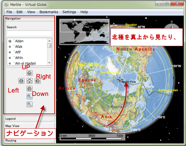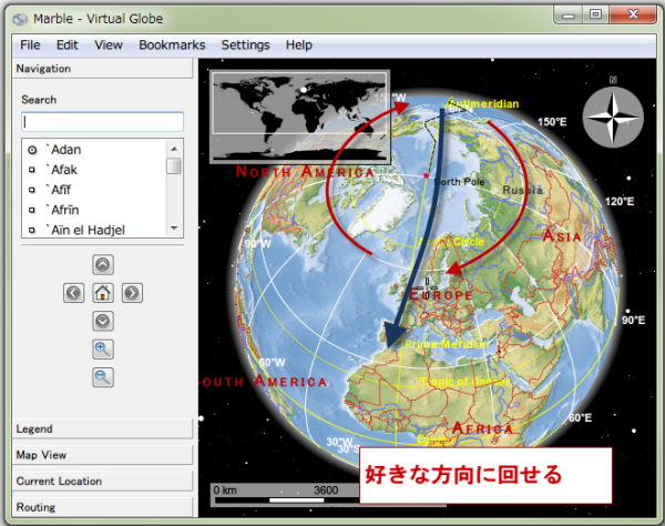 Marble Portableは、PC上はもちろん、USBなどで携帯できる地球儀ソフトです。