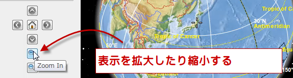 Zoom in Zoom out ボタンで表示を拡大したり縮小することができます。