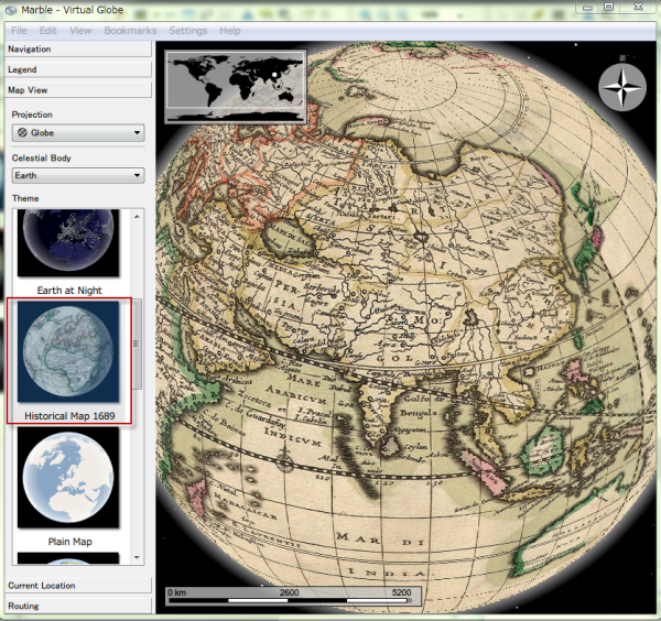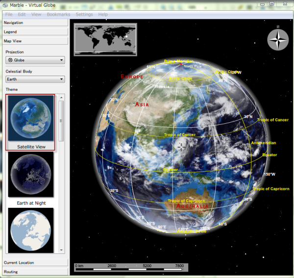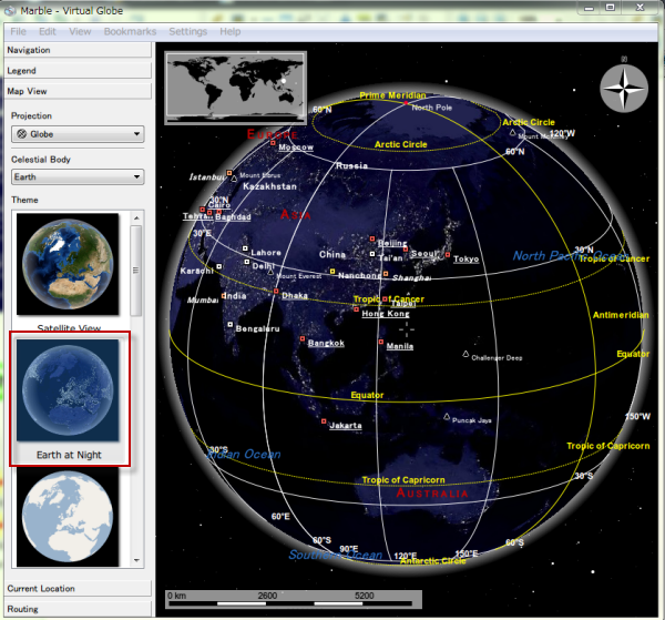 Marble Portableは、PC上はもちろん、USBなどで携帯できる地球儀ソフトです。