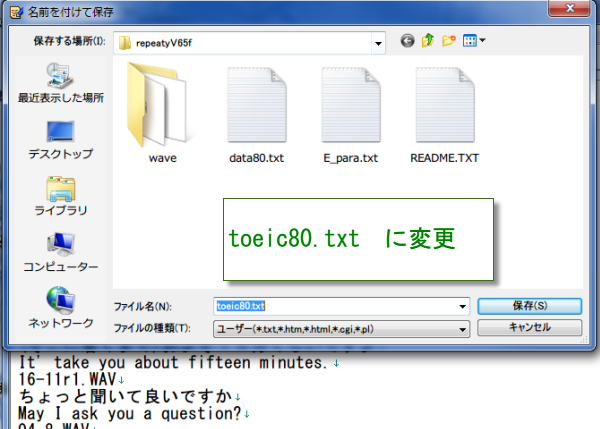 3行目の音声は、ファイル名.wav と指定します。