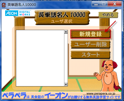 はじめに、ユーザーの登録をします。新規登録をクリックします。