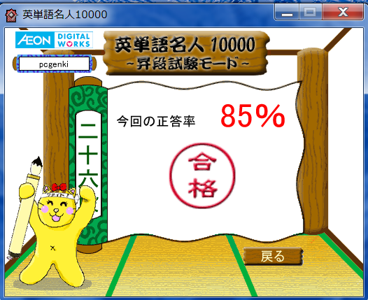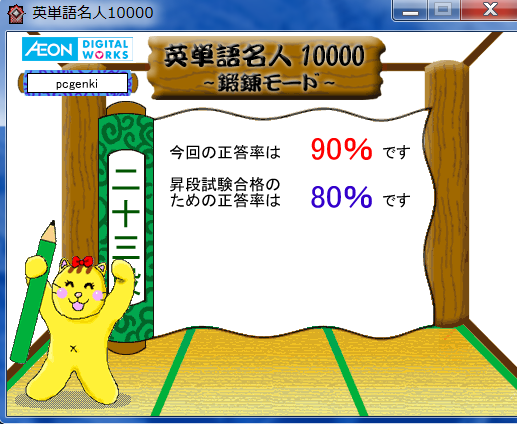 鍛錬モードが終わった時点で、80%以上の正解率だと昇段試験を受けることができます。