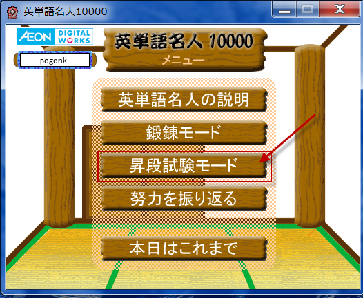 メニューに戻るので、昇段試験モードをクリックします。