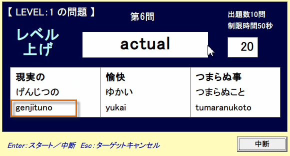 英単語の綴りを入力するのではなく、英単語の意味を入力するユニークな発想のタイピングソフトです。