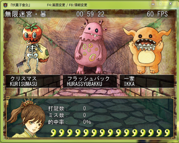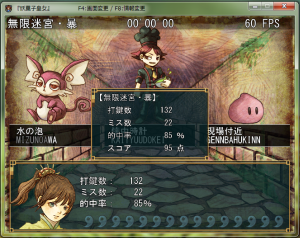 「無限迷宮」は、単語や単文を入力するフリータイピングのモードです。