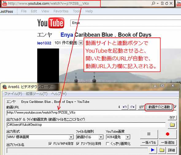 「動画サイト連動」ボタンを押すとIEが起動してYouTubeにアクセスします。YOUTUBEのサイトが開いたら、目的の動画を検索して表示させてください。