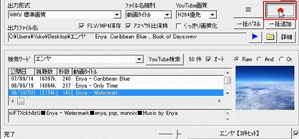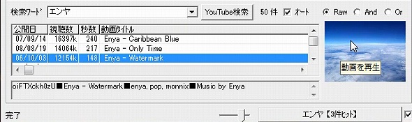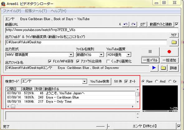 「検索ワード」入力欄にキーワードを入力して検索ボタンを押せば、YouTubeから関連動画を検索できます。検索パネルで動画を選択すれば、その動画を直ちにプレビュー、または、ダウンロードできます。