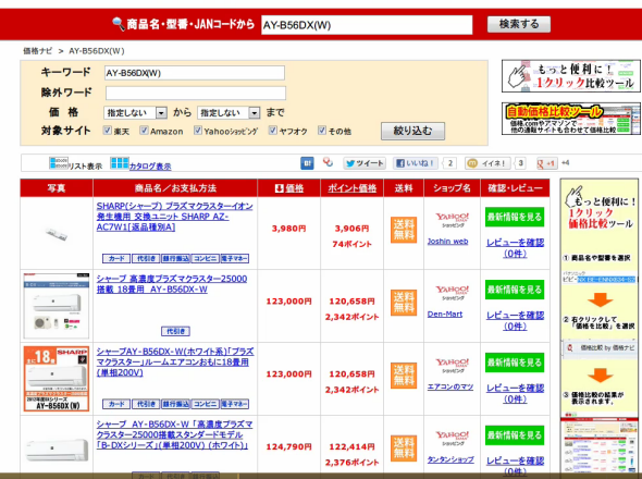 自動的に他サイトを検索して安値を表示