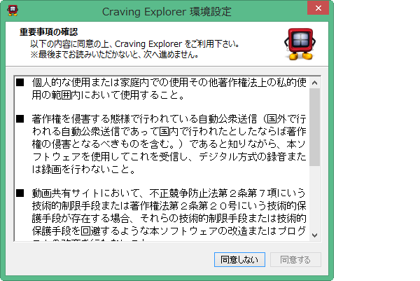この画面は、以前にCraving Explorerを利用している場合は表示されません。