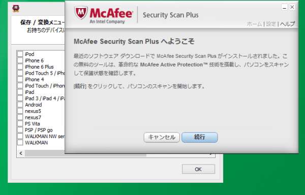おっと、一緒にインストールされた、McAfeeが起動してきました。