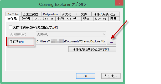 Craving Explorerオプションを選択して、ダウンロードした動画を保存するフォルダを決めておきましょう。